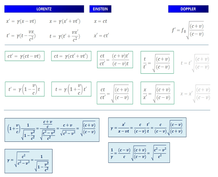 Note that the Lorentz transformation has been modified by Albert Einstein, in order to fulfill the equations [math]x=ct[/math] and [math]x'=ct'[/math], i.e. the invariance of the speed of light is applied to all frames of reference. Using Einstein's equations the Lorentz transformation [i]changes[/i] its features: [br]From a calculation model of figures in [i]translation status[/i] toward a model of [i]sizing and shaping[/i] through movement. [br][br][list][br][*]Switch off all the scale features and vary the time slider or the ß-slider ([math]ß=v/c[/math])![br]What is the result? To describe this case, how can the formulae be simplified?[br][*]Play a little bit with the ß-slider![br]You will detect how the red coordinate system is [b]shrinking[/b]. Just compare H an H' by x and use the shift-checkbox.[br][*]Switch off the [b]shift[/b] and the [b]lift[/b] option while increasing the ß-value![br]The red coordinate system will move toward the max value indicating v=c. The origin of the red system is moving toward t=0,x=0. Why is this a [b]necessary[/b] feature?[br][/list]