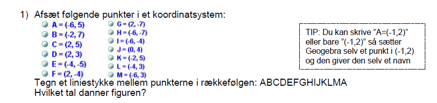 Afsæt punkterne (5,1) og (2,6) og forbind dem med en linje.
