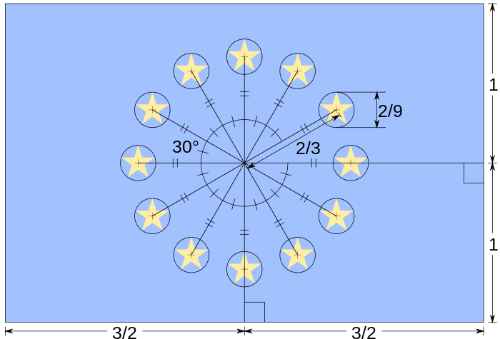 Alle flagene kan konstrueres ud fra to punkter vha. GeoGebras forskellige konstruktionsværktøjer.[br]Du får især brug for cirkler med ud fra Centrum og radius. De skal bruges til at afmåle længder.[br]Du får også brug for skæringspunkt-værktøjet.