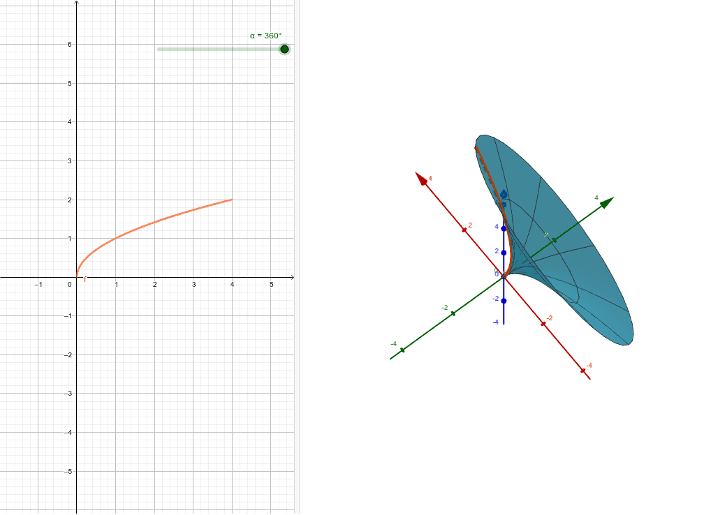 Halla el volumen del cuerpo de revolución engendrado al girar alrededor del Eje Y la curva :[br] [math]y=\sqrt{x}[/math] entre [math]y=0[/math] y [math]y=2[/math]
