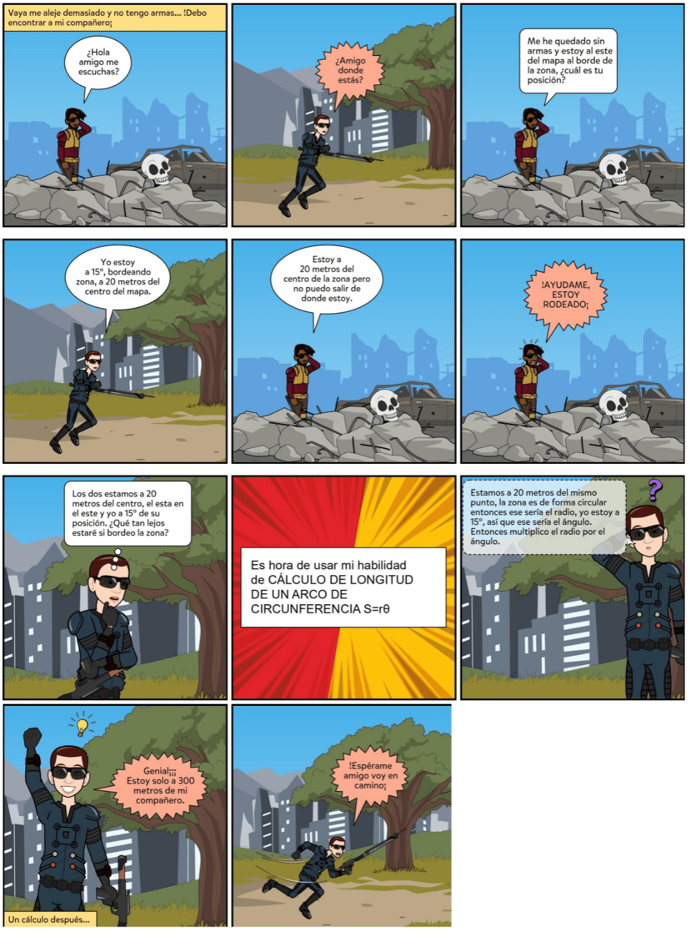 Cómic sobre el uso de la fórmula para calcular la longitud de arco de circunferencia