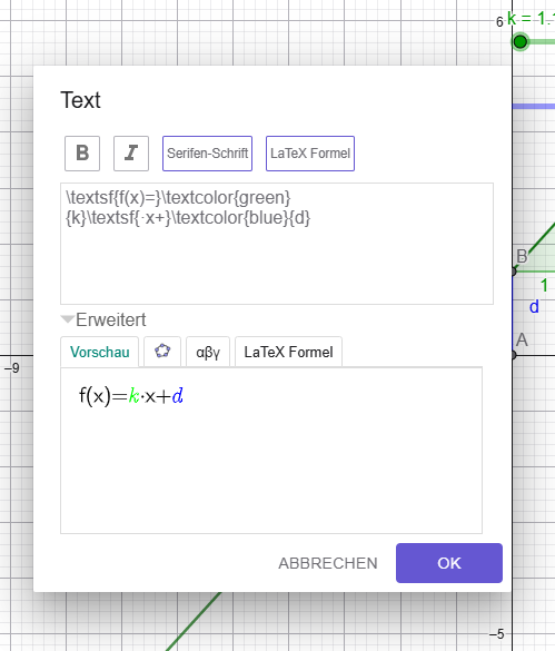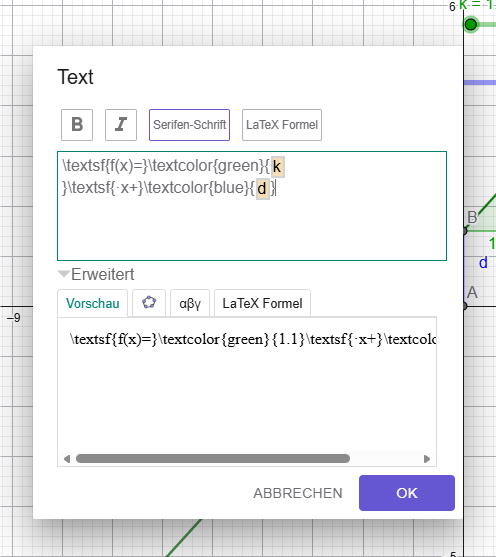 Veränderen Sie die Schieberegler [color=#0a971e]k[/color] und [color=#1551b5]d[/color]. Experimentieren Sie mit der Funktion!