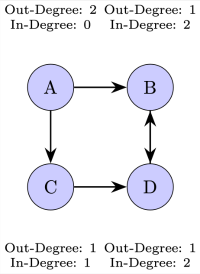 In-Degree and Out-Degree of a Directed Graph: The in-degree of a vertex is the number of edges pointing to it, while the out-degree is the number of edges that the vertex points to. In other words, in-degree counts the incoming arrows to a vertex, and out-degree counts the outgoing arrows from a vertex.[br]