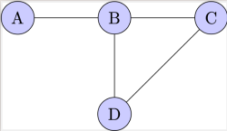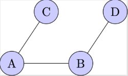 [b]Adjacent vertices[br][/b]Vertices A and B are adjacent because they are connected by a single edge.[br]Similarly, B and D are adjacent, as are C and D.[br] [br][b]Adjacent edges[br][/b]Edges A-B and B-C are adjacent because they share a common vertex, B.[br]Similarly, B-D and C-D are adjacent because they share vertex D.[br] [br] [b]Degree of a vertex[br][/b] Degree of B is 3 because there are three edges incident to B (A-B, B-C, B-D).[br] Degree of C, and D are 2, as two edges are incident to each of these vertices.