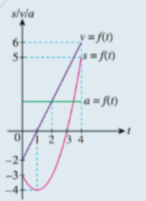 [size=100][b]The diagram above shows a displacement function, s=f(t),velocity function, v=f(t) and acceleration function, a=f(t) for a particle which moves along a straight line and passes through a fixed point O for [math]0\le t\le4[/math][/b][/size].[b] Based on the graph, determine[/b]