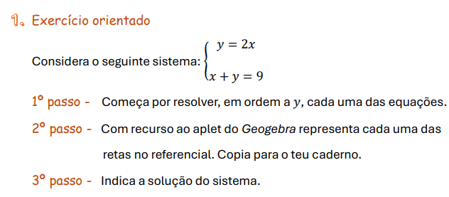 [b][size=150][color=#85200c]Neste capítulo vamos aprender a resolver sistemas pelo método gráfico com recurso ao geogebra. [br]Segue as seguintes orientações:[/color][/size][/b]