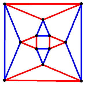 Een kuboctaëder is een van de [url=https://nl.wikipedia.org/wiki/Archimedisch_lichaam#:~:text=Er%20zijn%2013%20archimedische%20lichamen,en%20een%20rechtsdraaiende%20vorm%20bestaan.]13 Archimedische lichamen[/url].[br]Het heeft 8 driehoekige zijvlakkenen 6 vierkante zijvlakken. Een kuboctaëder heeft 12 identieke hoekpunten waar telkens 2 driehoeken en 2 vierkanten samenkomen en 24 gelijke ribben die telkens een driehoek van een vierkant scheiden.[br]Het Schlegel diagram beeldt het af als een planaire graaf.