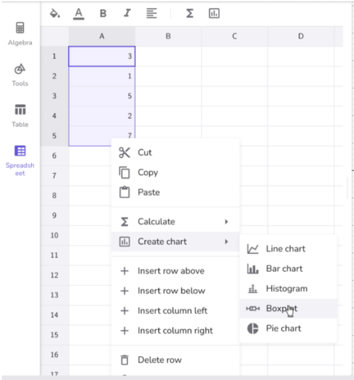 De mogelijkheid om losse gegevens te verwerken in het tabelvenster is vooral interessant voor csv databestanden. In csv databestanden kan je in één record meerdere gegevens bundelen (persoonsgegevens, productinformatie...).[br]Via het tabelvenster kan je zowel de afzonderlijke gegevens analyseren als het eventueel verband tussen de verschillende gegevens. [br]Hoe je dat doet leer je op pagina [url=https://www.geogebra.org/m/ermrfpec#material/enxmg3tg]4t: csv-databestanden[/url].[br]Je kan uiteraard ook 'gewone' lijsten met gegevens verwerken, maar hiervoor ben je op termijn toch beter af met het rekenblad.