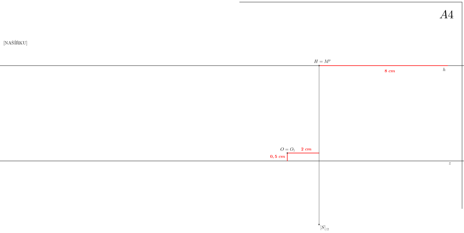 V [math]$LP(h,z,H,d)$[/math] zobrazte rotační válec s podstavou ležící v základní rovině [math]$\pi$[/math], kružnice podstavy je dána perspektivním průmětem středu [math]$O$[/math] a poloměrem [math]$r=70$[/math], výška kužele je [math]v=120[/math]; [math]$v_h=60$[/math], [math]$d=200$[/math].