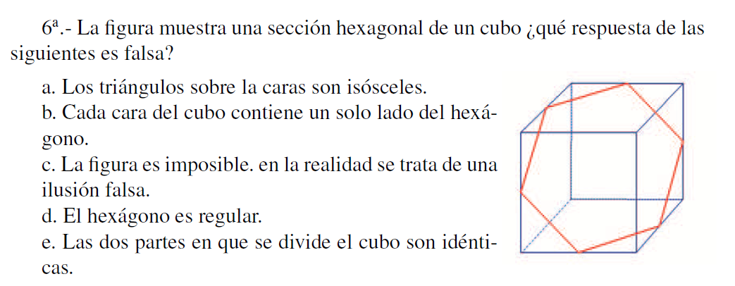 Esta sección hexagonal de un cubo, es un ejercicio de un test para conocer el nivel de Van Hiele de un alumno.