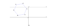 V [math]$LP (h, z, H, d)$[/math] je dán sklopený půdorys pravidelného šestiúhelníku [math]$ABCDEF$[/math] ležícího v základní rovině [math]$\pi$[/math]. Sestrojte jeho perspektivní obraz.