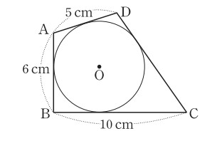 [b][color=#0000ff][문제 4][/color][/b] 다음 그림과 같이 원 O에 외접하는 □ABCD에서 [math]\overline{AB}=6cm[/math], [math]\overline{BC}=10cm[/math], [math]\overline{DA}=5cm[/math]일 때, [br] [math]\overline{CD}[/math]의 길이를 구하시오.