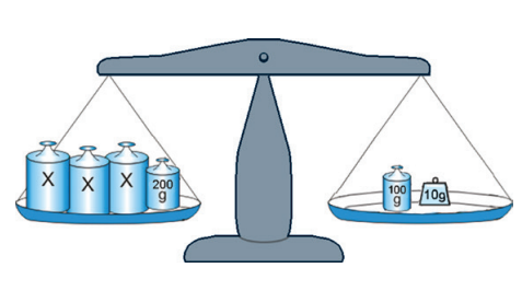 2- Observe a balança abaixo. Qual o valor de x para que ela esteja em equilíbrio?