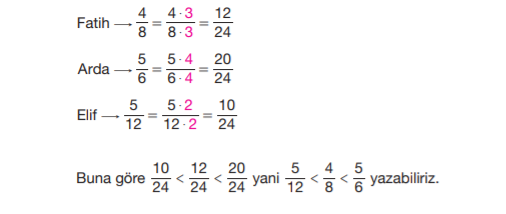 [b]3. yol:[/b] Verilen kesirleri genişleterek paydalarını eşitleyelim, sıralayalım.