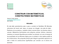 Este libro GeoGebra está formado por las prácticas que se llevaron a cabo en el Taller:[br]"CONTRUYENDO CON MATEMÁTICAS, CONSTRUYENDO MATEMÁTICA"[br]impartido en la VI Jornada GeoGebra de la Comunidad Valenciana, el 17 de octubre de 2025 en Valencia.[br][br]Se trata de un taller para profesores que ya se han iniciado en GeoGebra y quieren explorar algunas posibilidades del la ventana 3D.[br][br]El taller consta de cuatro ejercicios. Cada capítulo contiene un documento pdf con la descripción del ejercicio y los pasos a realizar. Además están como actividad GeoGebra el punto de inicio del ejercicio, el resultado final, y en algún caso también pasos intermedios.[br]A continuación se enlaza una CARPETA COMPARTIDA donde descargar directamente todos los archivos ggb.