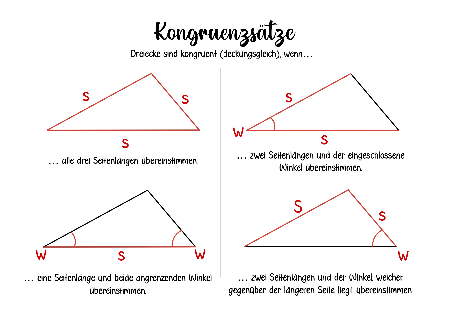 Sind drei Größen gemäß einem der vier Kongruenzsätze gegeben, so lässt sich ein [b]Dreieck eindeutig konstruieren[/b]. Wie das funktioniert, wird in den nächsten Abschnitten erklärt.