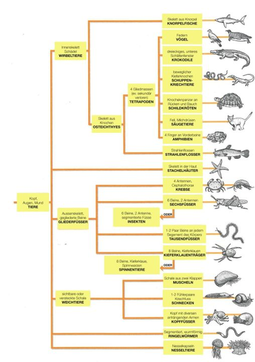 Forscher schätzen, dass es auf der Erde 15 Millionen Tierarten gibt.... wie soll man da den Überblick behalten? [br]So hat man es geschafft: Man hat spezifische Eigenschaften ausgewählt und die Tierarten anhand dieser Eigenschaften in verschiedene Tiergruppen und -untergruppen eingeteilt: