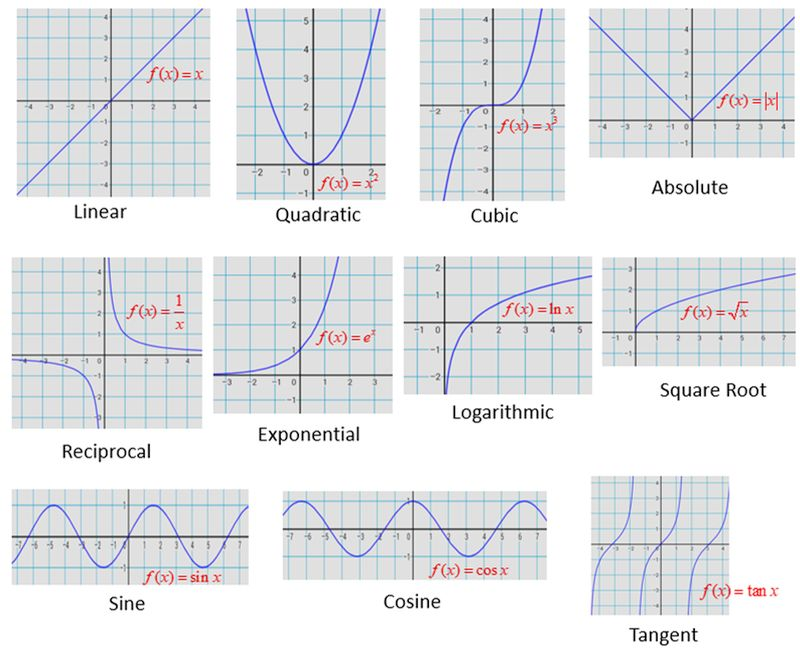 Auf die gleiche Weise haben Mathematiker innerhalb der unendlichen Vielfalt der Funktionen, nach spezifischen Eigenschafen verschiedene Funktionsarten identifiziert: