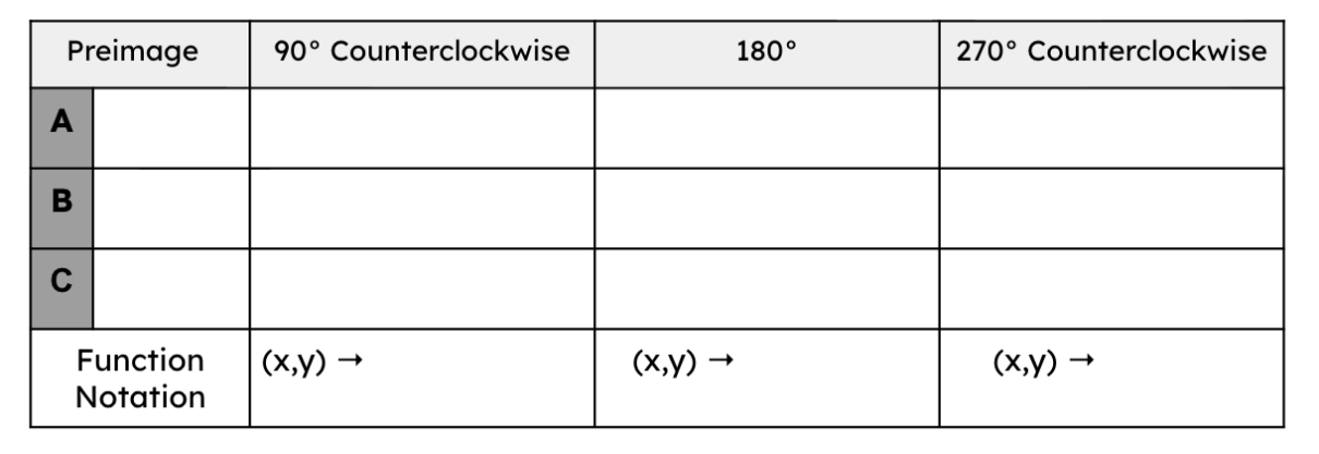 Move the angle to 90, 180, and 270. Write your image points on your chart (see below).