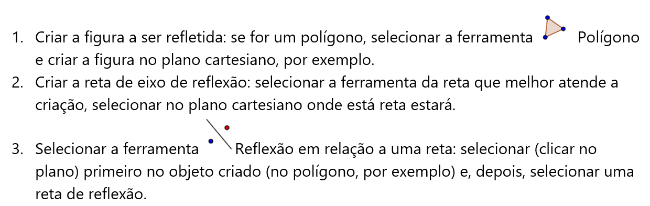 Para fazer uma reflexão no plano, precisa-se em ordem:[br][br][br]