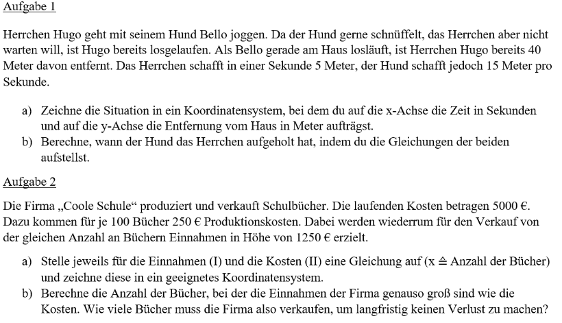 [size=150]Darstellung als Text:[/size][br][br]Die [b]Darstellung [/b][b]als Text[/b] (z.B. Sachaufgabe) einer linearen Gleichung gilt oft nur für [math]x,y\in\mathbb{Q}_0^+[/math].