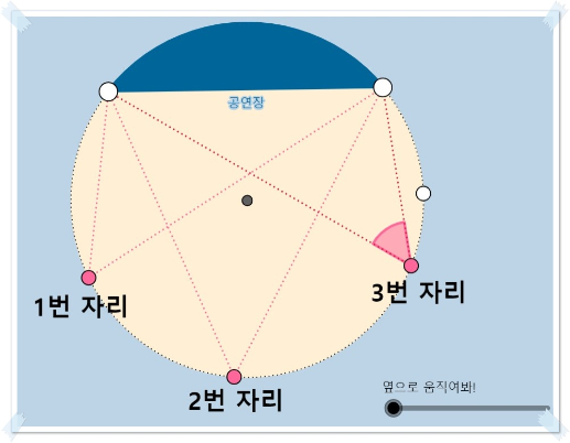 이제 [b][color=#ff00ff]현,[/color][/b] [b][color=#e69138]접선[/color][/b] 그리고 [b][color=#3c78d8]원주각[/color][/b]이 [color=#a64d79][b]서로 어떤 관련이 있는가[/b][/color]에 대해서도 한번 고민해 볼 시간입니다.[br][br]그래서 준비했습니다.[br][br][b][color=#0000ff][탐구활동 1] [/color][/b]아래 그림을 한번 조작해 보세요.