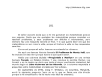 El concursante debe elegir una puerta de entre tres (todas cerradas); el premio consiste en llevarse lo que se encuentra detrás de la elegida. [br]Se sabe con certeza que tras una de ellas se oculta un coche, y tras las otras dos hay sendas cabras.[br][br]Una vez que el concursante haya elegido una puerta y comunicado su elección a los presentes, Monty, el presentador, que sabe lo que hay detrás de cada puerta, abrirá una de las otras dos y mostrará que detrás hay una cabra. [br][br]A continuación, le da la opción al concursante de cambiar, si lo desea, de puerta (tiene dos opciones). [br][br]¿Debe el concursante mantener su elección original o escoger la otra puerta? ¿Hay alguna diferencia?[br][br]Realiza el juego un mínimo de 30 veces con la misma estrategia y recoge tus resultados en una tabla.[br]¿Qué conclusión extraes?[br]