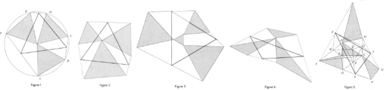 [br][br][i]"A néhai [url=https://en.wikipedia.org/wiki/Leon_Bankoff]Leon Bankoff[/url] (1997-ben halt meg) a kaliforniai Beverly Hillsben élő fogorvos, aki emellett a síkgeometria világszinten elismert szakértője is volt.1979-ben mesélt nekem egy sor lenyűgöző felfedezéséről, amit az általa aszimmetrikus propeller-tételnek nevezett tétellel kapcsolatban tett. Szándékában állt ezeket egy cikkben tárgyalni, de soha nem jutott el odáig, hogy megtegye. Ez egy összefoglalása annak, amit elmondott nekem. Az eredeti propeller-tétel legalább az 1930-as évek elejére nyúlik vissza, és ismeretlen eredetű. Három egybevágó egyenlő oldalú háromszögre vonatkozik, amelyek csúcsai egy [i]pontban találkoznak, mint az [/i]az 1. ábrán árnyékolva látható A háromszögeknek, amelyek egy propeller lapátjaira hasonlítanak, nem kell szimmetrikus mintát alkotniuk, hanem bármilyen helyzetben lehetnek. Egymáshoz érhetnek, vagy akár át is fedhetik egymást. [/i]A[i] BC, DE és FA szakaszokat úgy rajzoljuk meg, hogy egy körbe írt hatszöget alkossanak. A három szakasz felezőpontjai egy egyenlő oldalú háromszög csúcsai. A tétel komplex számokat használó bizonyítása az évente megrendezett [url=https://maa.org/putnam/]William Lowell Putnam verseny [/url]B-1. feladatának megoldásaként jelent meg.[br][url=https://en.wikipedia.org/wiki/Harold_Scott_MacDonald_Coxeter]H. S. M. Coxeter[/url] a bizonyítást egy karácsonyi üdvözlőlapon küldte el Bankoffnak, és megkérdezte tőle, hogy tud-e euklideszi bizonyítást adni a tételre. Bankoffnak nem okozott nehézséget ilyen bizonyítást találni. [url=https://users.renyi.hu/~p_erdos/1973-28.pdf]"Az aszimmetrikus propeller" [/url] című dolgozatban Bankoff, [url=https://hu.wikipedia.org/wiki/Erd%C5%91s_P%C3%A1l]Erdös Pál[/url] és[url=https://en.wikipedia.org/wiki/Murray_S._Klamkin] Murray Klamkin[/url] elkészítette a tétel első általánosítását. [br][br]Megmutatták, hogy a három egyenlő oldalú háromszögnek nem kell egybevágónak lennie. Bármilyen méretűek lehetnek, ahogy a 2. ábrán látható, és a tétel akkor is érvényes. Két bizonyítást adnak, az egyik egy egyszerű euklideszi bizonyítás, a másik komplex számokkal kapcsolatos. Mint korábban, és minden későbbi kiterjesztésben, a háromszögek érintkezhetnek egymással, vagy akár át is fedhetik egymást.[br][br]Később Bankoff három további általánosítást tett. Tudomásom szerint ezeket nem publikálták. [br][br]Második általánosítás: A propeller-háromszögeknek nem kell egy csúcsban találkozniuk Találkozhatnak bármelyik egyenlő oldalú háromszög csúcsában, ahogyan a 3. ábrán látható. [br][br]Harmadik általánosítás: A propeller-háromszögeknek nem kell szabályosaknak lenniük. Elegendő, hogy azonos körüljárású hasonló háromszögek legyenek.[br][br][br]Negyedik általánosítás: A hasonló háromszögeknek nem kell egy pontban találkozniuk! Ha a légcsavarok egy tetszőleges méretű negyedik háromszöghöz csatlakoznak úgy hogy a közös csúcshoz tartozó szögek egyenlők legyenek.[br][br]Bankoff 1973-ban bizonyította - elemi úton - a propeller tételnek ezt a végső, általánosítását."[br][/i][br][right]M. Gardner[/right]