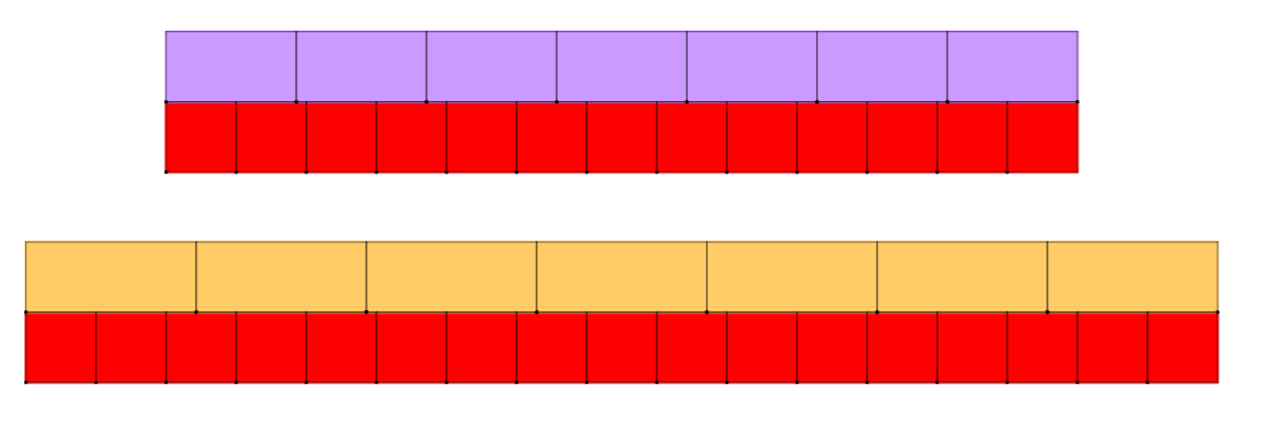 [size=150][justify][/justify][/size][justify][size=150]Prezado professor, esta construção foi elaborada de modo a evitar que múltiplos de [math]x[/math], de [math]y[/math] ou da unidade produzam com facilidade comprimentos de mesma medida, o que poderia prejudicar o bom desenvolvimento de atividades com o Algeplan.[br]Contudo, apesar de nossos esforços, situações como esta podem aparecer, pois o quadrado vermelho que representa a unidade foi construído com lado medindo [math]7[/math] unidades, [math]x = 13[/math] e [math]y = 17[/math].[br]Estes números não foram escolhidos ao acaso, mas por serem primos cuja diferença de valor na escala utilizada é bastante perceptível visualmente, o que garante que a unidade e as medidas [math]x[/math] e [math]y[/math], serão facilmente diferenciadas umas das outras.[br]O fato de esses números serem primos minimiza o aparecimento de situações indesejáveis como as representadas na figura abaixo, que poderiam sugerir, pelo fato de formarem retângulos, que expressões como [math]7x + 13[/math] ou [math]7y + 17[/math] poderiam ser fatoradas, o que sabemos não ser verdade. Deve-se assim evitar criar expressões que possam produzir esse tipo de situação.[/size][/justify]