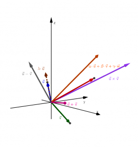 Das folgende interaktive Programm wird verwendet, um einfache vektoralgebraische Operationen in 3D zu demonstrieren.