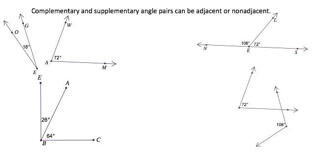 [size=150][color=#0000ff]Complementary and supplementary angle pairs can be adjacent or nonadjacent.[/color][/size]