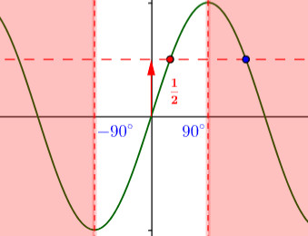 Il seno non è una funzione biunivoca: se ad un angolo corrisponde un solo seno [math]\left ( \textcolor{red}{\mbox{ad esempio }\sin(30°)=\frac{1}{2}}\right )[/math], a quel valore del seno corrispondono infiniti angoli [math]\left ( \mbox{\textcolor{blue}\mbox{ad esempio anche 120° ha seno pari a }\frac{1}{2}}\right )[/math]. Quindi in generale la funzione seno non è invertibile, perchè la relazione inversa genera infiniti output per ogni input (per ogni valore del seno vi sono infiniti angoli con quel seno). [br][br]Se consideriamo la funzione seno nell'intervallo tra -90° e +90°, però eliminiamo questo problema: in quell'intervallo per ogni valore del seno vi è un solo angolo che ha quel seno e quindi anche la relazione inversa un risultato univoco ed è una funzione.