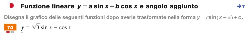 [size=150]L'equazione che hai appena visto è un'[b]equazione lineare in seno e coseno[/b], cioè presenta senx e cosx con esponente 1.[br][br]Usando gli slider nel modello GeoGebra sottostante dimostra che una funzione lineare in seno e coseno corrisponde a una funzione sinusoidale, facendo combaciare i due grafici.[/size]