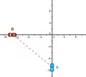 A tananyagegység két, egymásra merőleges úton haladó kocsi távolságának időfüggését mutatja be.