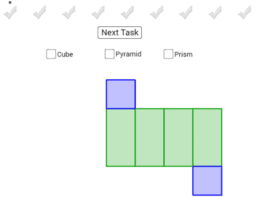 Explore the nets of the geometric solids prism, cube and pyramid and rebuild them using geometric figures.